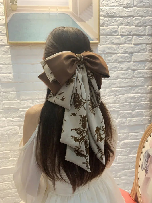 Autumn Flower Splicing Large Bow Hairpin Women Satin Big Bowknot Bow Barrettes Ponytail Clips for Girs Woman Hair Accessories