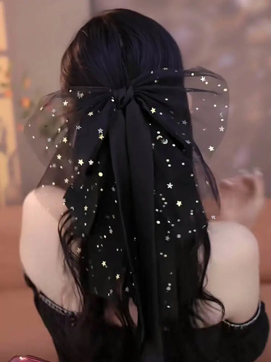 Korean Exquisite Black Mesh Hair Clips for Women Fabric Bow Spring Hair Claw Elegant Barrette Headwear Hair Accessories