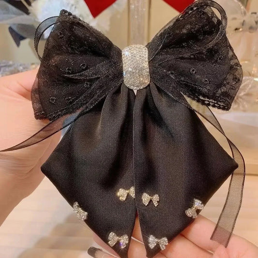 New Big Bow Bling Rhinestone Tassels Hair Clip Satin Hairpins Barrettes Ponytail Clip Elegant Shiny Double Bow Hairpin Heawear