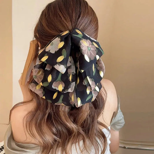 2024 New Women Girls Hair Claws Accessories Hairband With Big Bow Hair Clips Barrettes Bowtie Knotted Ribbon Chiffon Hairpin