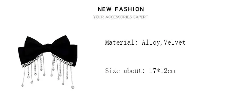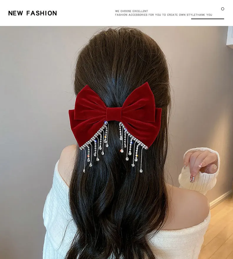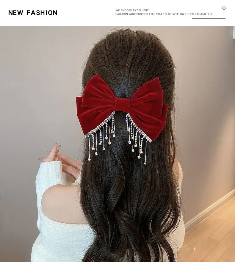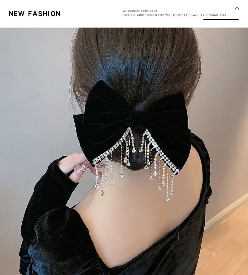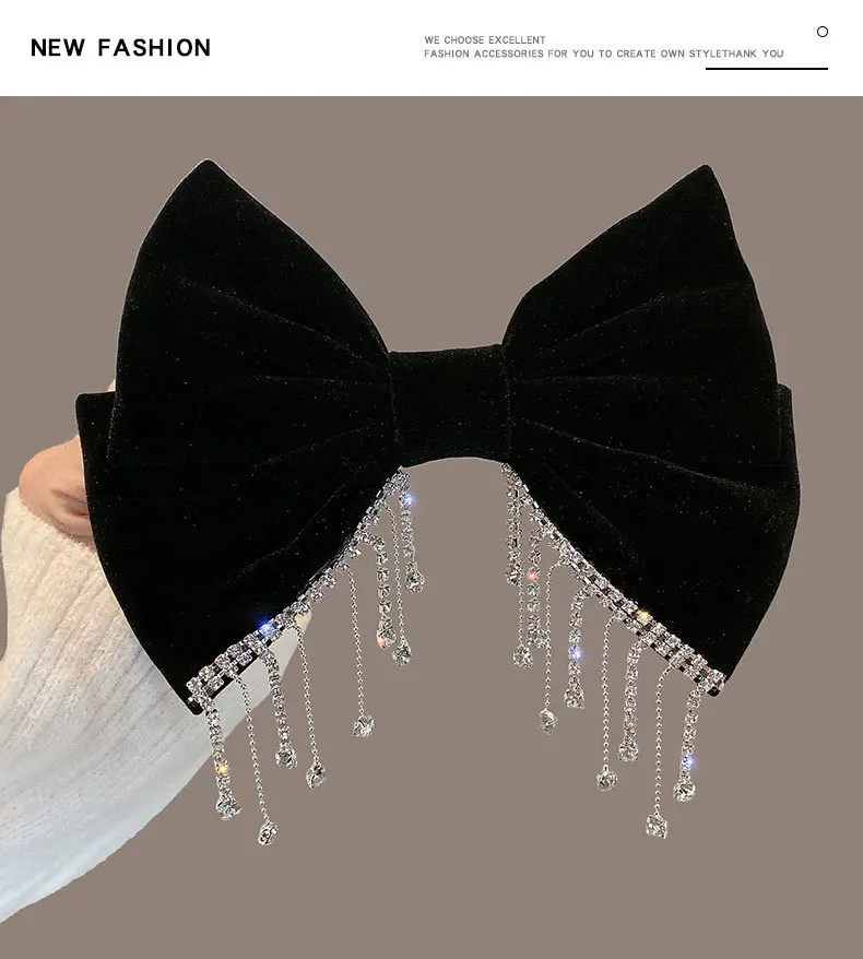 New Big Bow Bling Rhinestone Tassels Hair Clip Satin Hairpins Barrettes Ponytail Clip Elegant Shiny Double Bow Hairpin Heawear
